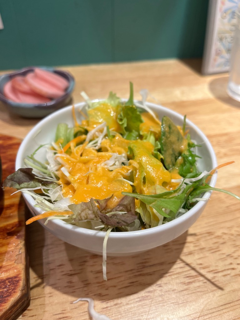 まずは漬物とサラダが提供されます。