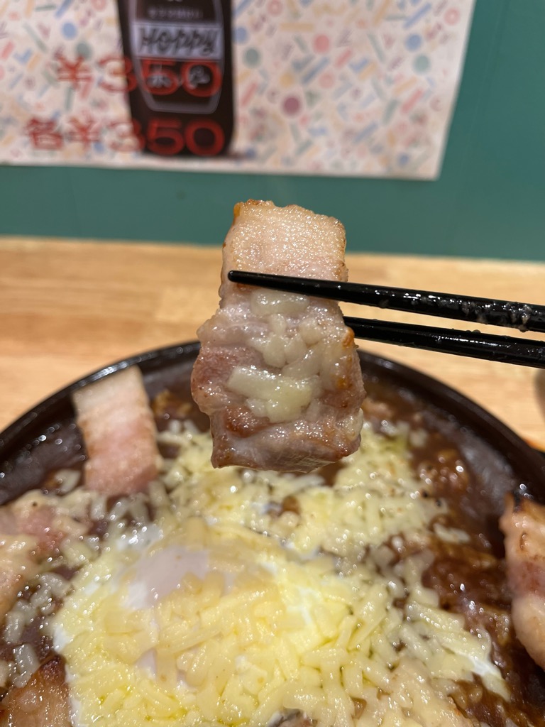 食べ進むうちに、チーズとカレーとライスが絡み合い、次の一口が自然と恋しくなります。肉の脂と甘みが、間に差し込まれたアクセントとなって飽きさせずに引きつけます。