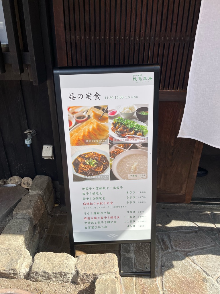 ランチメニューがこちら。今回は「麻婆豆腐と餃子3ケ定食(1180円)」を注文。