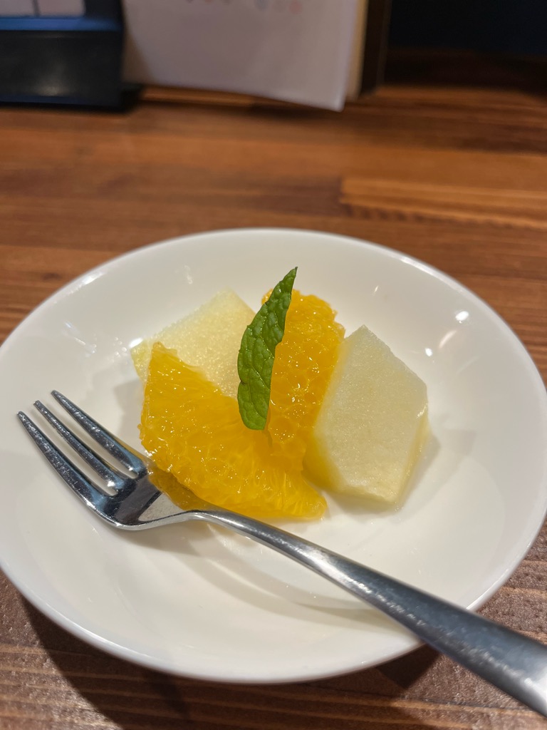 最後はデザート。中華っぽいデザートを期待していたのですが、はっさくとリンゴ。口直しにはよかったです。
